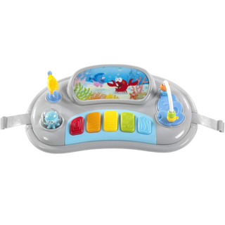 - Interactive Play Tray: Features engaging toys, sounds, and colorful elements to stimulate your baby’s senses and keep them entertained.