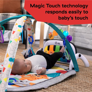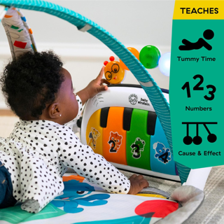 • Interactive Piano: Baby can kick or press the piano keys to activate music and lights, encouraging movement and cause-and-effect learning.